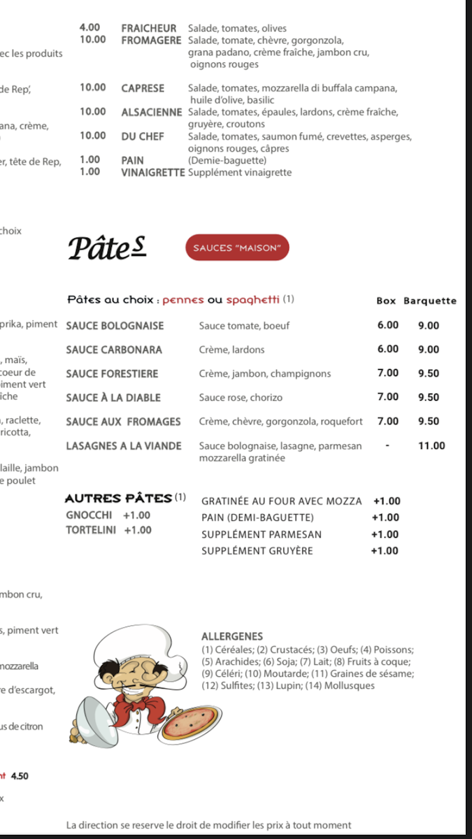 Chez Aldo Pizza offers a diverse selection of pasta dishes that cater to various tastes. The menu features classics like Bolognaise and Carbonara, both comforting options for pasta lovers. For those looking for a bit more spice, the Box à la diable is a fiery choice, while the Aux 4 fromages delivers a rich, cheesy experience. The Forestière combines hearty flavors, perfect for those who appreciate a more rustic taste. Seafood enthusiasts can opt for the Box au saumon, offering a lighter, yet flavorful option. Whether you're in the mood for something creamy, spicy, or cheesy, Chez Aldo Pizza provides an array of tempting pasta choices, with each dish bringing something unique to the table.